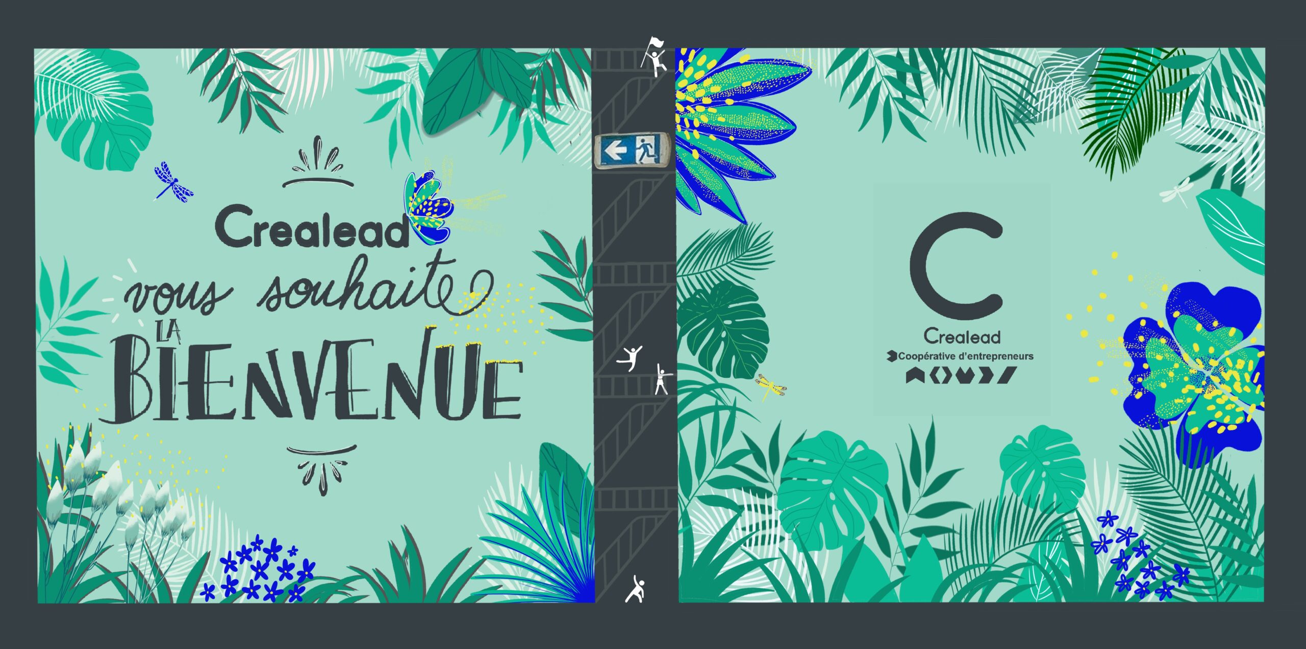 Création d’une fresque murale pour habiller l’accueil du bâtiment de Crealead.